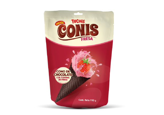 CONIS DE CHOCOLATE CON TOPPING DE FRESA 110 g